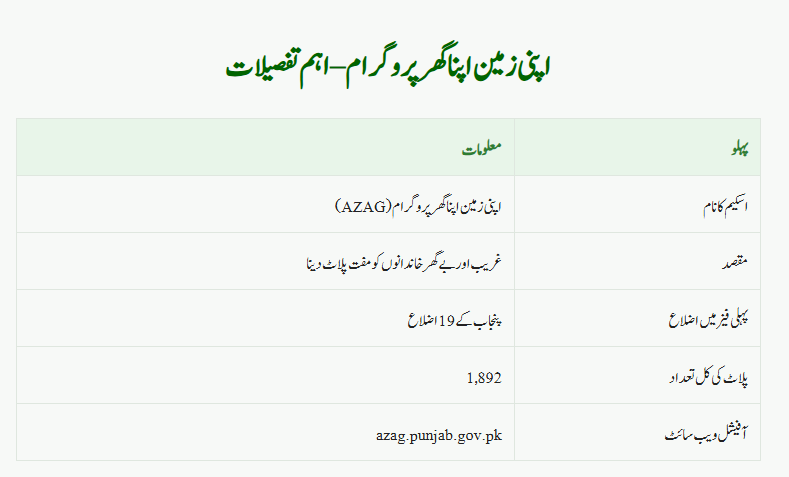 Apni Zameen Apna Ghar Program – Quick Details