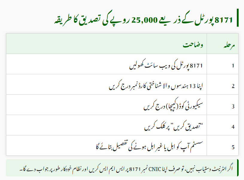 💡 Tip: If you don’t have internet access, simply send your CNIC number via SMS to 8171 — you’ll receive a reply within minutes confirming your status.