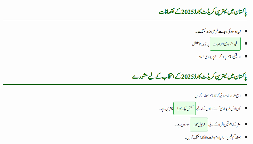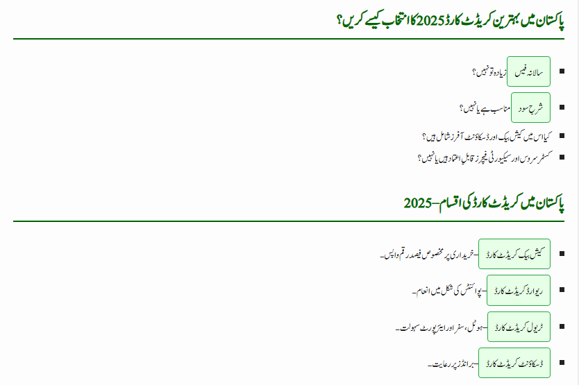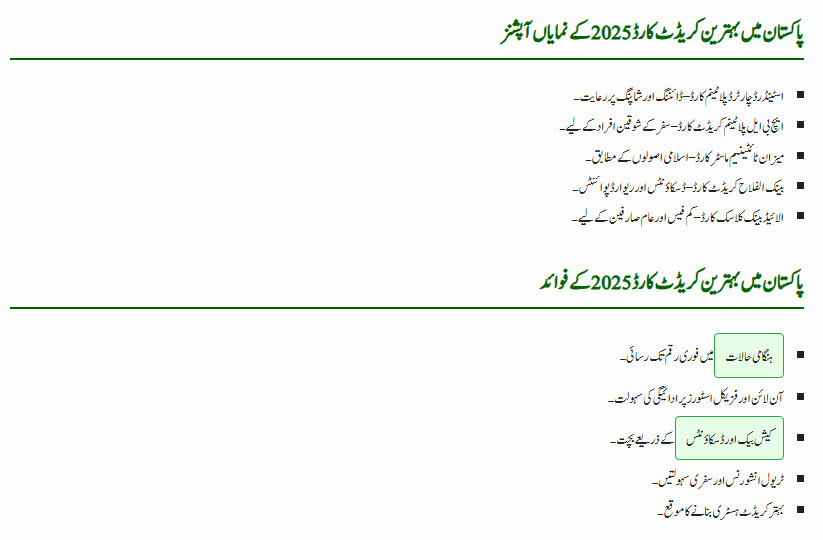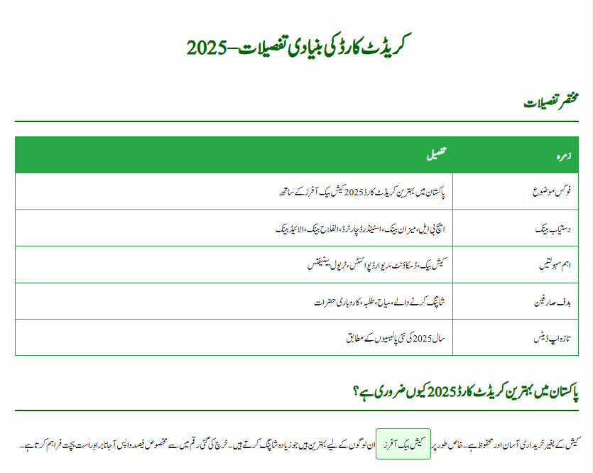 | Focus Topic | Best Credit Card in Pakistan 2025 with Cashback Offers |