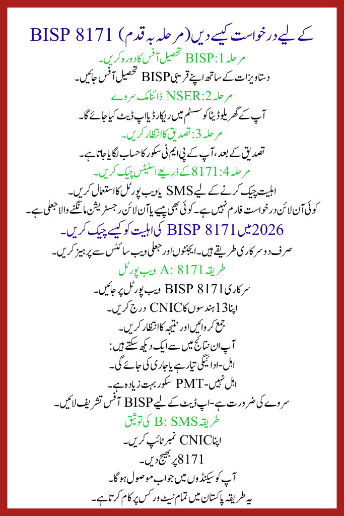 There are BISP 8171 Eligibility Criteria 2026 only two official methods. Avoid agents and fake websites.