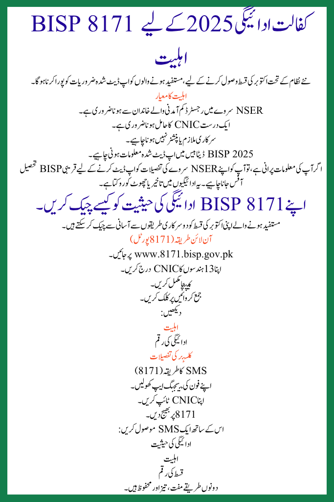 Eligibility for BISP 8171 Kafalat Payment 2025