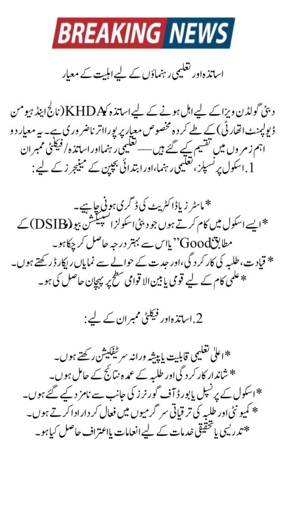 The Golden Visa is not just a residence permit — it is a reward for excellence. It helps teachers live and work in Dubai with peace of mind. It also encourages professional growth and makes Dubai a global destination for quality education.