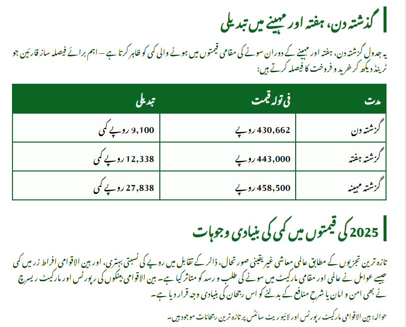 Another major factor is the slight improvement in Pakistan’s currency value and a decline in global inflation. These two elements combined pushed gold prices downward. Experts believe this decline may be temporary, and any shift in global conditions might bring gold back up again.