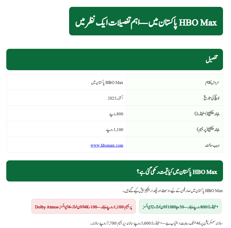 HBO Max officially launched in Pakistan in October 2025 as part of its South Asian expansion.