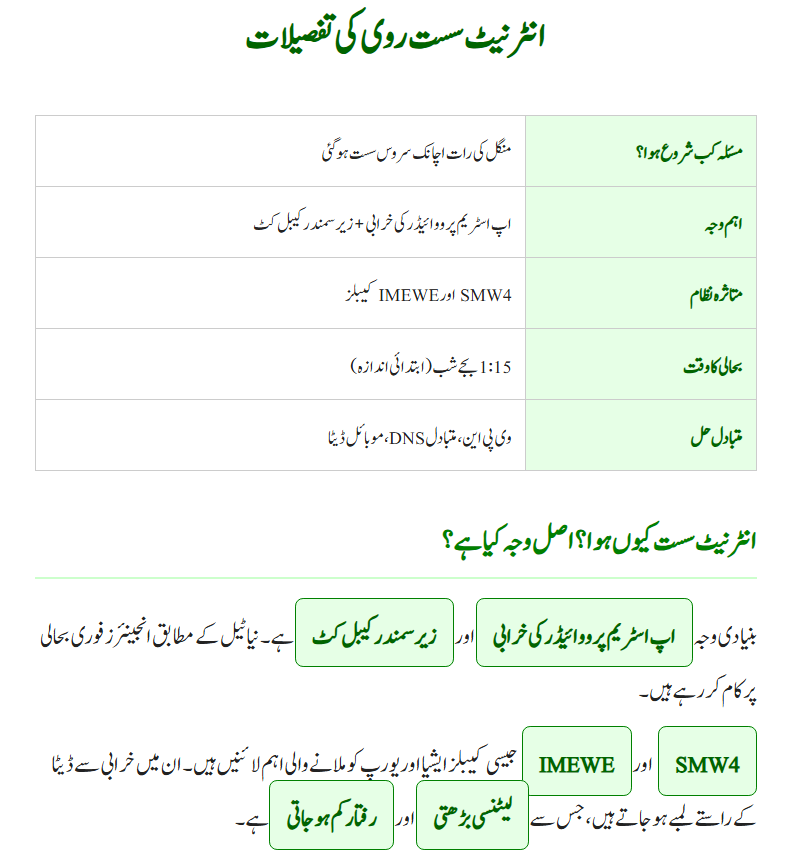 This problem was not limited to one city—it affected major cities including Karachi, Lahore, Islamabad, and Peshawar. The reason behind this sudden slowdown was linked to technical faults both inside and outside Pakistan. Experts have also warned that if these issues are not resolved quickly, users may continue to face problems in the coming days.