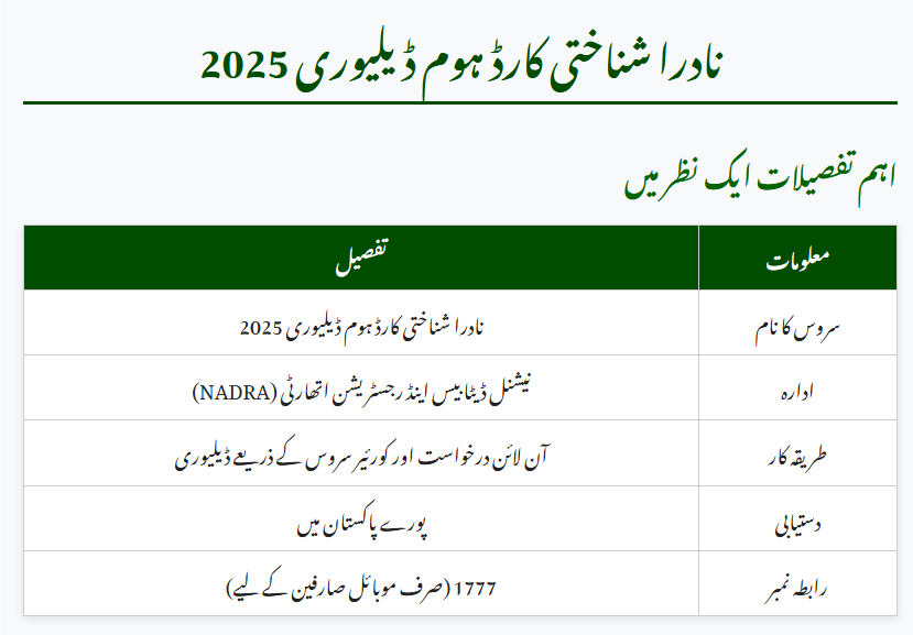 | Service Name | NADRA CNIC Home Delivery 2025 |