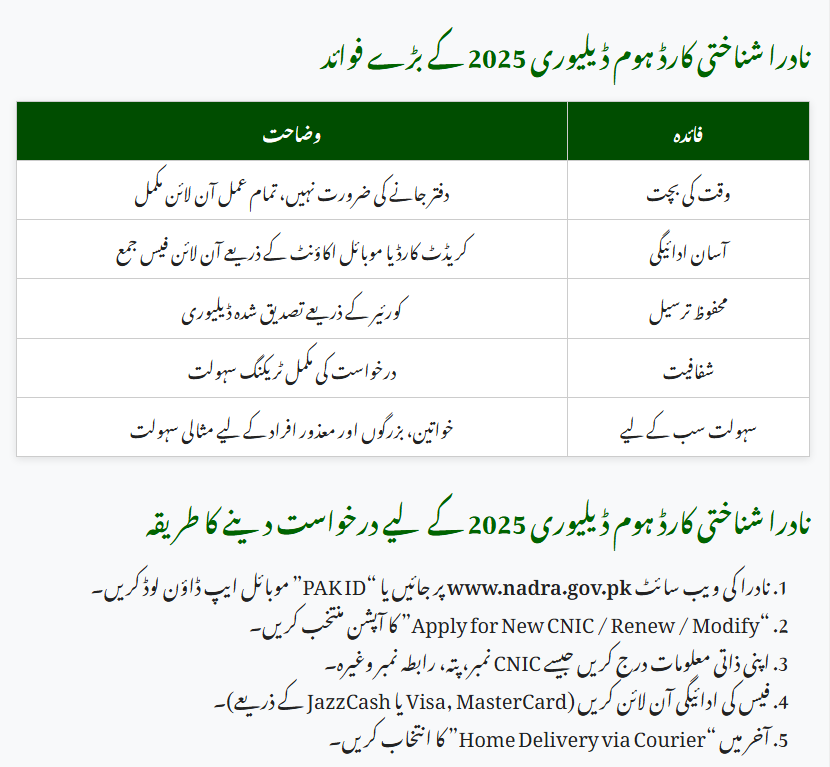 Main Benefits of NADRA CNIC Home Delivery 2025