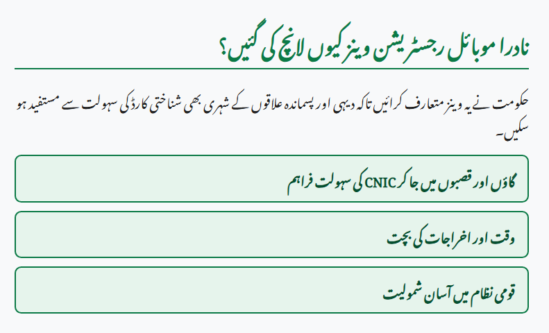 The service is designed for people who cannot easily reach NADRA offices. It includes:
