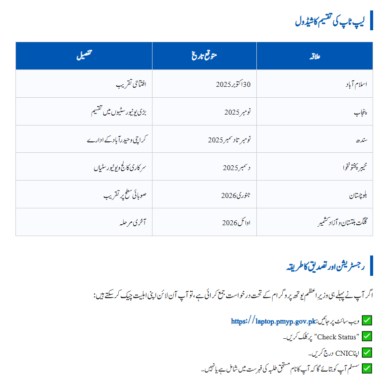 The Free Laptop Scheme 2025 distribution will start in Islamabad on October 30, 2025, and will continue in other provinces step by step — Punjab, Sindh, Khyber Pakhtunkhwa, Balochistan, Gilgit-Baltistan, and Azad Kashmir.