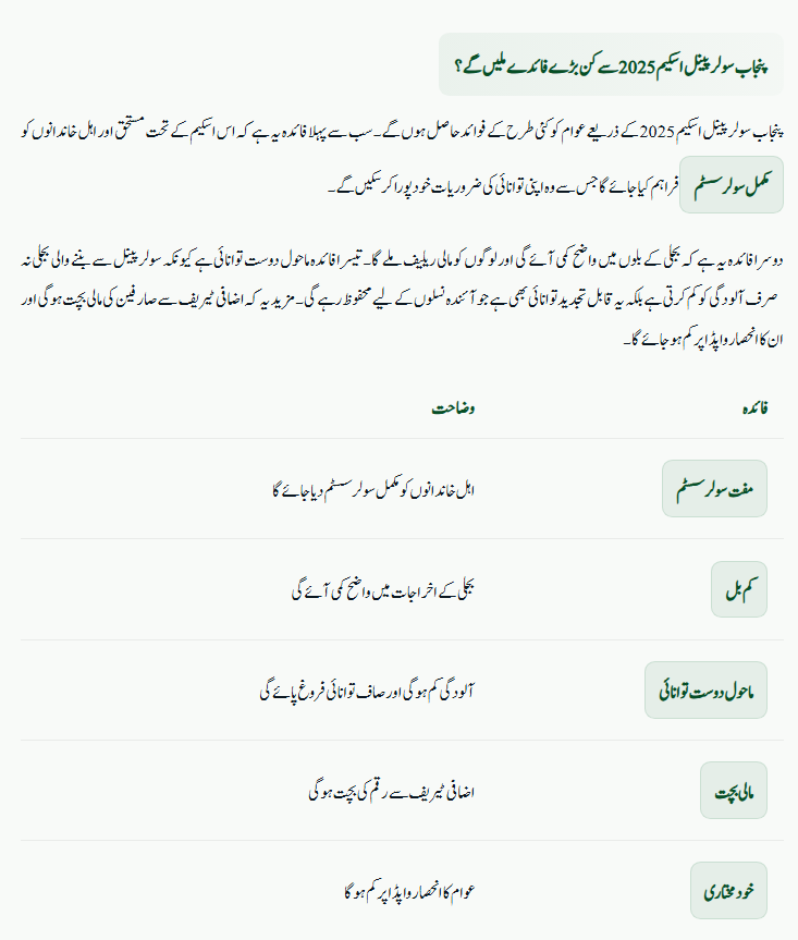 The Punjab Solar Panel Scheme Phase 2 brings several direct benefits for eligible families. Firstly, complete solar systems will be provided free of cost to low and middle-income households. This will immediately reduce electricity bills and provide much-needed financial relief. Secondly, families will enjoy a reliable source of power, reducing their dependency on WAPDA. Thirdly, this scheme supports green energy, which reduces pollution and helps the environment. Additionally, savings on extra tariffs will allow families to manage their budgets better. Overall, this scheme is a long-term policy step towards energy security and public welfare.