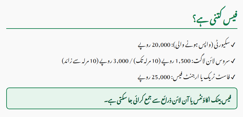 - Service line cost: Rs. 1,500 for houses up to 10 marla, Rs. 3,000 for houses above 10 marla
